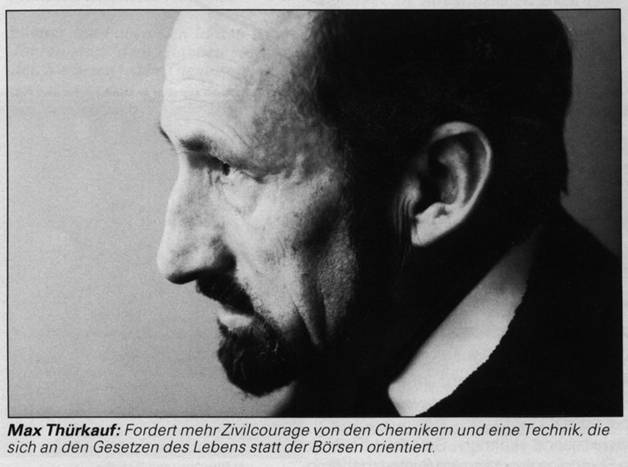 Thürkauf: Es ist bombensicher, dass jeder Chemiker, der gegen die Umweltzerstörung aufsteht, die Stelle verliert, sofern er nicht gerade Gymnasiallehrer oder Kantonschemiker ist. Ich verstehe jeden der vielen tausend Schweizer Chemiker, der schweigt und weder seine schöne Stelle noch seine Pensionskasse riskieren will. Aber es braucht künftig mehr Zivilcourage.