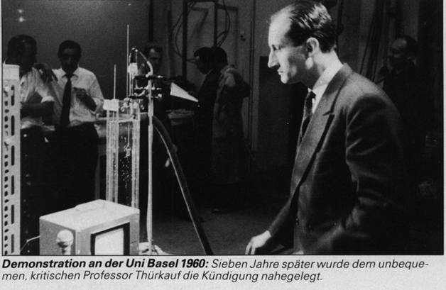 Thürkauf: In der modernen Naturwissenschaft lernen die Studenten immer perfekter, wie Chemie und wie Physik ist. Sie wissen ganz genau, wie ein chemischer Vorgang abläuft. Daneben fehlt ihnen aber die Zeit zu fragen, was Chemie und was Physik ist. Die Substanz meiner Thesen ist: Nicht nur nach dem Wie zu fragen, sondern auch das Was zu erforschen und zu lernen, Verantwortung zu tragen.